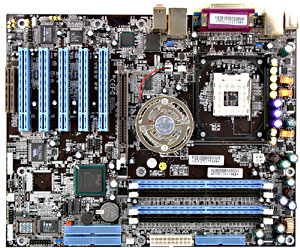 Краткие характеристики платы: разъемы памяти 4 DDR SDRAM; слоты расширения AGP/ 5 PCI/ CNR; порты ввода/вывода 2 COM/ LPT/ 2 PS/2/ 3 FireWire/ 8 USB 2.0; размеры 305х245 мм.