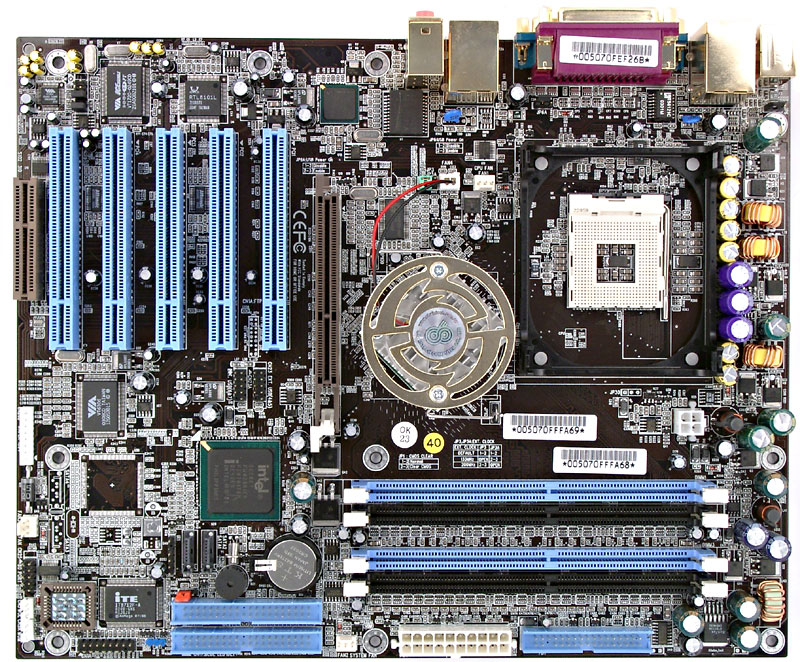 Разводка платы вполне стандартна, из недостатков отметим расположение разъемов IDE позади слотов PCI и скученность разъемов вокруг слотов DIMM, что будет препятствовать свободному доступу к модулям памяти. Доступ к некоторым из имеющихся перемычек может быть затруднен при установке платы в корпус, краткое описание их функциональности приведено на текстолите платы.