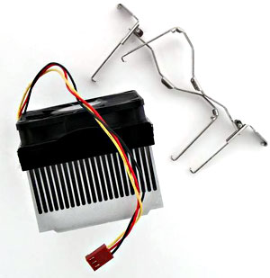 Для процессора мы использовали поставляющуюся в комплекте модель CoolerMaster DI4-7I52A. Это стандартный кулер, с алюминиевым радиатором с трапециевидным сечением ребра, обладающий 70-миллиметровым вентилятором с частотой вращения 3800 об/мин. Кулер рекомендован для процессоров с частотой 2,8 ГГц и выше, так что проблем с ним возникнуть не должно, а поскольку вращение обоих вентиляторов автоматически регулируется в зависимости от температуры (реализованная на плате технология носит название Smart Fan), то и типичный уровень шума весьма низкий по официальным данным ECS, он составляет 30 дБ на расстоянии 0,5 м от закрытого корпуса.