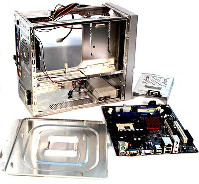 Представляемый сегодня barebone-комплект от ECS наименее «радикален» из всех описанных нами за последнее время. Это привычного вида «башенка», хотя и достаточно миниатюрных размеров, не предполагающая установки в иное положение и рассчитанная на использование системной платы стандартного форм-фактора mATX, «нормально» крепящейся на стенку. При этом комплект значительно интереснее, чем просто «маленькая башенка», в первую очередь, конечно же, благодаря действительно уникальной функциональности EZ-Watcher. Итак, представляем вашему вниманию первую модель из серии, продвигаемой ECS под лозунгом «Вернем настольные компьютеры на столы!».