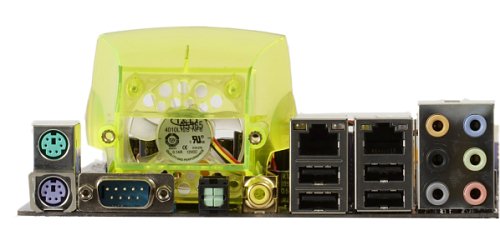 Для охлаждения чипсета инженеры ECS не стали выдумывать ничего оригинального (в отличие от решений на тепловых трубках, использованных конкурентами в платах на nForce4 SLI X16): кулер на горячий южный мост и радиатор на холодный северный. При этом алюминиевый радиатор на южном мосту практически лишен оребрения, зато снабжен быстроходным вентилятором с прослушивающимся уровнем шума (и это в самом начале эксплуатации, а ведь со временем такие вентиляторы склонны к завываниям). В то же время северный мост на дочерней плате снабжен лишь небольшим игольчатым радиатором, но расположен так, что будет обдуваться процессорным кулером. Со своей задачей при работе на штатных частотах и «неэкстремальном» разгоне такая система охлаждения справляется без замечаний. Кроме того, фирменная черта плат ECS серии Extreme — дополнительный вентилятор с направляющим раструбом-воздуховодом в зоне преобразователя питания, выдувающий воздух из корпуса.