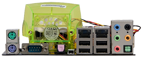 По внешнему виду рассматриваемая модель полностью повторяет все остальные платы серии «Extreme»: окрашена в сиреневый цвет, снабжена перемигивающимися светоиндикаторами при слотах расширения, имеет характерного вида ридиаторы на мостах чипсета и оснащена «кислотно»-салатовым кулером для охлаждения полевых транзисторов в цепи питания процессора. Вообще, на наш взгляд, такой экстерьер не добавляет плате серьезности, и из-за этого ее сложно воспринимать как действительно топовый продукт. Хотя, конечно, на вкус и на цвет… К тому же вентилятор на северном мосту чипсета начал противно завывать уже через пару суток тестирования платы под нагрузкой, за что был заслуженно отключен. Поскольку плата после этого без малейших проблем проработала еще несколько дней (правда, без разгона), вердикт относительно полезности этого пластмассового высокооборотистого изделия вы можете вынести и сами. В отличие от него, вентилятор на задней панели платы за тот же срок не был замечен ни в каких порочащих явлениях, к тому же он достаточно тихий (не слышен на фоне «боксового» кулера процессора, работающего при включенной технологии Smart Fan).