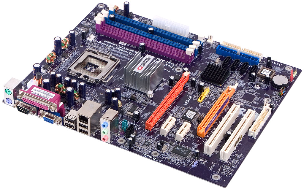 - Процессорный сокет (Socket 775, заявлена совместимость со всеми существовавшими на момент анонса статьи топовыми одноядерными процессорами Intel с частотой шины не выше 800 МГц: Celeron D (345), Pentium 4 (570 и 660), Pentium 4 Extreme Edition (3,4 ГГц));