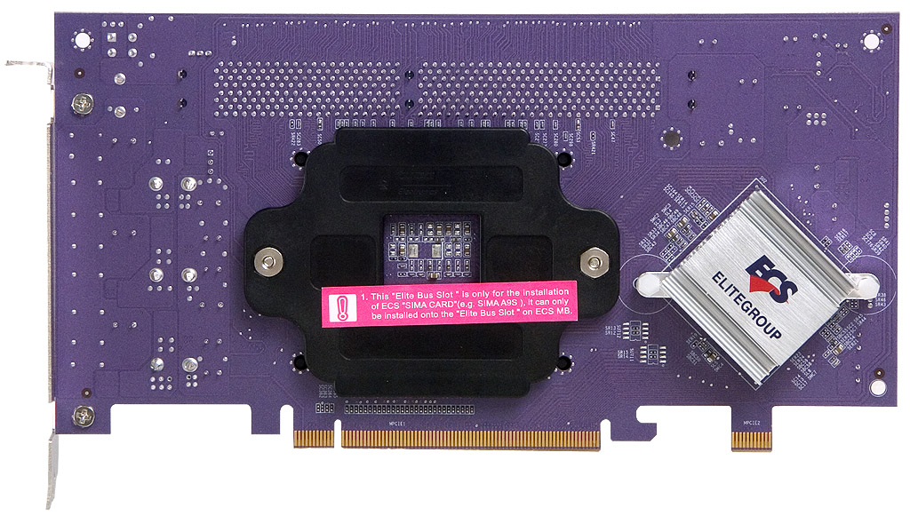 К разводке ECS A9S никаких претензий не возникло, но при установке платы в корпус, возникают сразу две проблемы. Обе эти проблемы связаны с большими размерами карточки. Во-первых, такая большая карта расширения по определению не может положительно влиять на циркуляцию воздуха в корпусе, что в свою очередь, неблаготворно скажется на температурном режиме. Во-вторых, установленная в корпус, ECS A9S затрудняет манипуляции с модулями памяти, рядом с которыми расположен слот Elite BUS. Также, стоит отметить, что на эту карточку можно установить далеко не все кулера. Это связано с тем, что процессорный сокет расположен достаточно близко к поверхности основной платы, и если поставить слишком широкий вентилятор, то он просто не даст установить A9S в соответствующий слот.