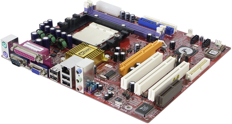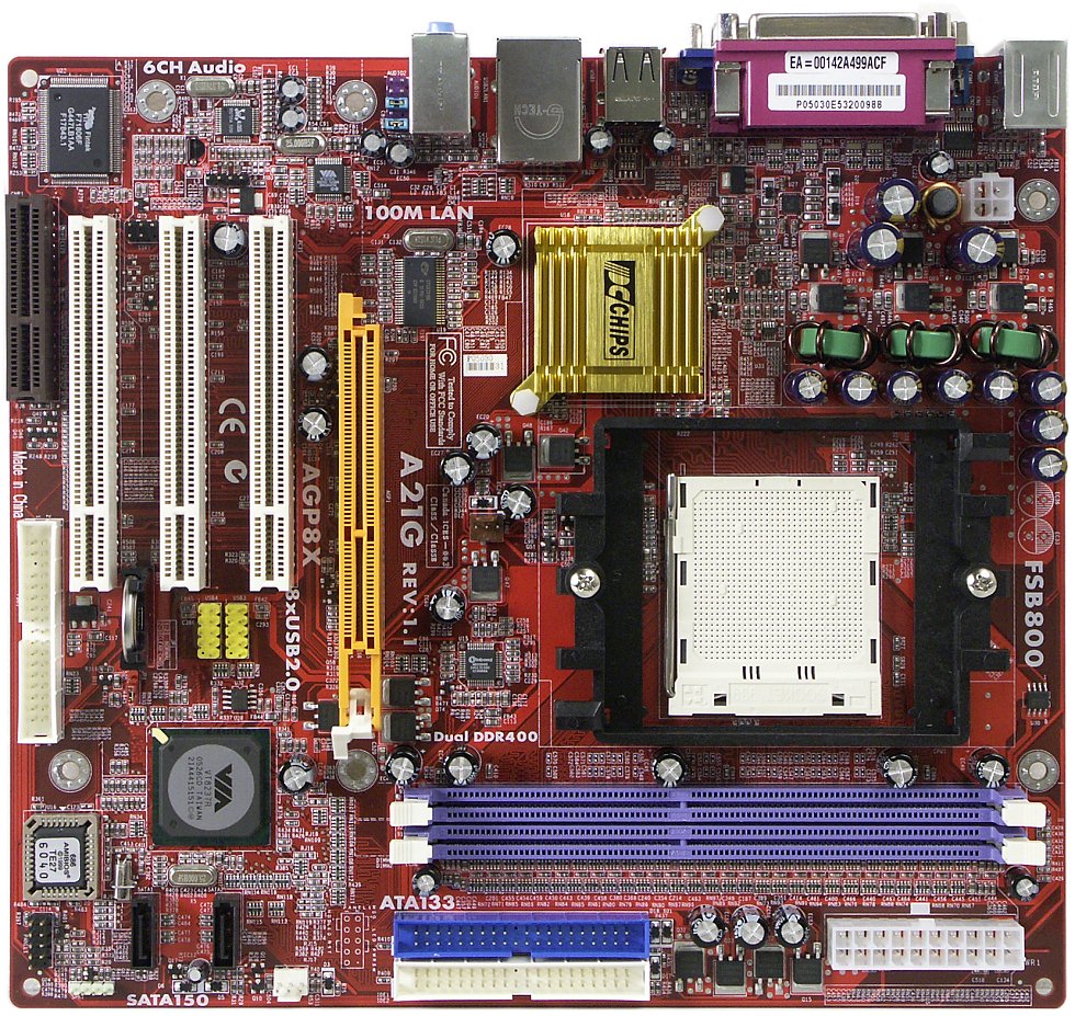 Причем все эти соображения касаются не только максимально упрощенных компьютеров класса «замена печатной машинки», но и используемых «по делу» достаточно активно. Именно для таких систем, нуждающихся в более производительных процессорах, нежели Sempron для Socket 754, и предназначены платы со столь же минималистичной комплектацией, но возможностью установить Sempron/Athlon 64 для Socket 939. На московском рынке представлены две модели на чипсете K8M800 с процессорным разъемом Socket 939 — ASUS A8V-MX и принявшая участие в нашем тесте PCChips A21G.