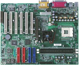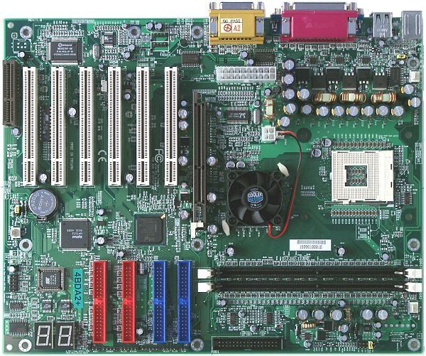 Краткие характеристики платы: разъемы памяти — 2 DDR SDRAM; слоты расширения — AGP/ 6 PCI/ CNR; порты ввода/вывода — 2 COM/ LPT/ 2 PS/2/ 4 USB 1.1; размеры платы — 305х245 мм.