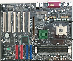 «Маска, а я вас знаю!»  так и хочется сказать после первого взгляда на эту плату. Характерные семисегментные светодиоды POST-контроллера, и привычный для EPoX IDE RAID на микросхеме от HighPoint выдают ее авторство. Рассмотрим же эту вроде бы знакомую плату поподробнее.