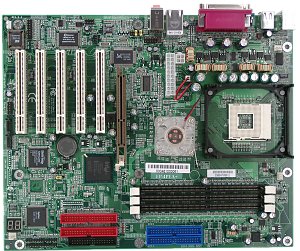 Краткие характеристики платы: разъемы памяти 3 DDR SDRAM; слоты расширения AGP/ 5 PCI; порты ввода/вывода 2 COM/ LPT/ 2 PS/2/ 6 USB 2.0; размеры 305х245 мм.