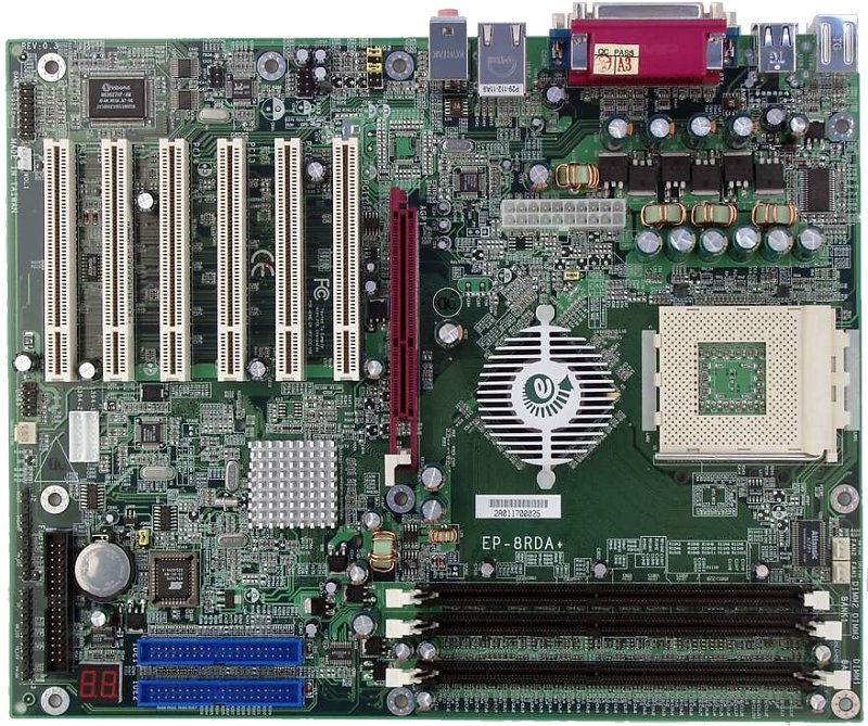 Краткие характеристики платы: разъемы памяти 3 DDR SDRAM; слоты расширения AGP/ 6 PCI; порты ввода/вывода 2 COM/ LPT/ 2 PS/2/ 2 IEEE 1394/ 6 USB 2.0; размеры 305х245 мм.