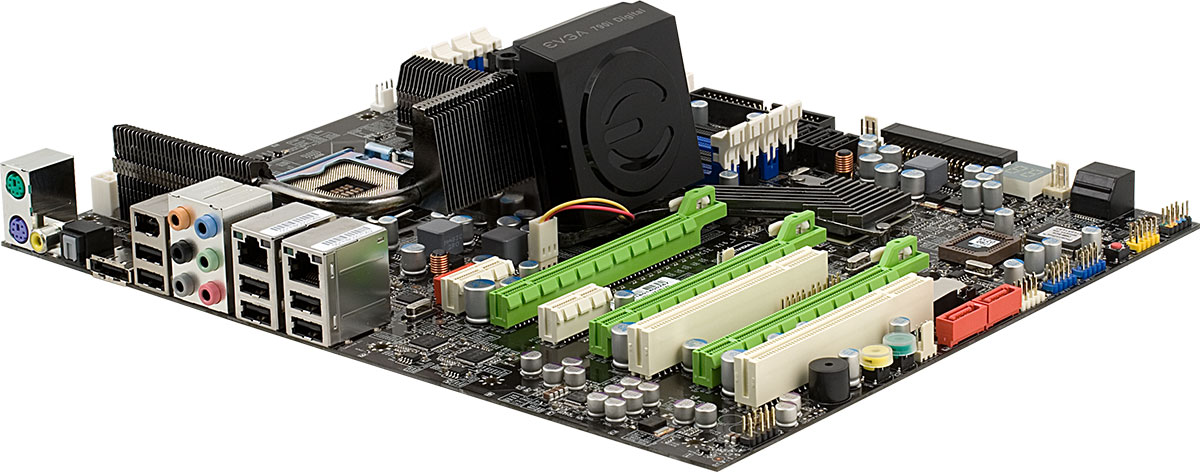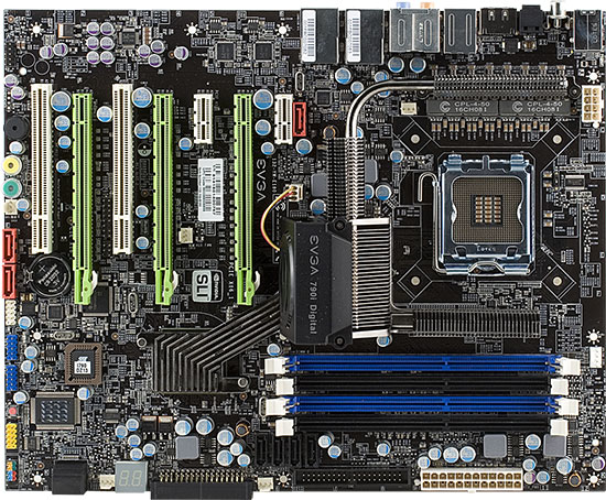 И вот теперь EVGA представила новую модель, nForce 790i SLI FTW Digital PWM, название которой легко позволяет опознать единственное изменение, примененное в новинке: цифровой стабилизатор питания. Более эта модель ничем не отличается от EVGA nForce 790i SLI FTW. Впрочем, у обеих моделей с суффиксом FTW есть важное отличие от референсной платы на NVIDIA nForce 790i Ultra SLI: они официально основаны на NVIDIA nForce 790i SLI, а не на Ultra-версии чипсета, что (при неразличимой на практическом уровне разнице в возможностях) означает существенно меньшую стоимость чипсета и, следовательно, готового решения.