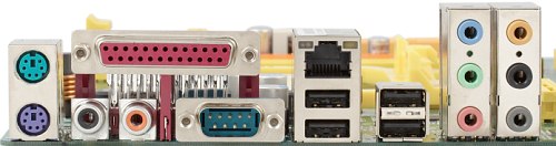 Компоновку платы, безо всяких поблажек «для своих», можно назвать исключительно удачной, все разъемы и перемычки располагаются вдоль краев платы, доступ к основным разъемам удобный и после установки в корпус. На плате приведено краткое описание функциональности перемычек. Зелено-желто-оранжевая расцветка выглядит нарядно и «фирменно» (внимание привлекает панелька под батарейку, которую также не поленились сделать из цветной пластмассы). Не в пример многим дорогим платам на старших чипсетах, несмотря на установку двух графических портов, на плате нашлось место для 3 PCI-слотов. Из привычного набора интерфейсов отсутствует лишь FireWire, впрочем, 10 портов USB — 4 на задней панели и 6 на дополнительных планках (вернее, планке, обещанной в расширенной комплектации, если верить инструкции, но в комплекте поставки нашей платы такая принадлежность отсутствовала) послужат неплохой компенсацией. Если, конечно, вы уже не приобрели какую-нибудь видеокамеру с FireWire-интерфейсом (пожалуй, единственная разновидность периферии для которой USB менее популярен).