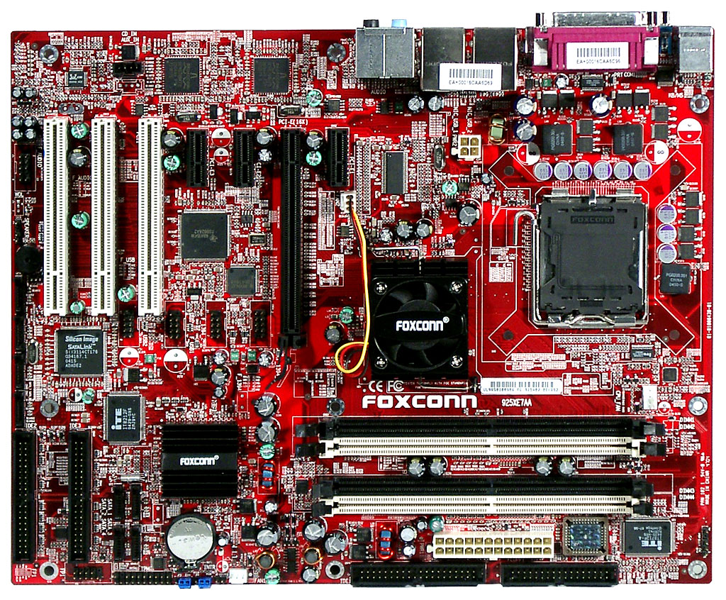 Примечательно наличие на поверхности платы SATA-контроллера Silicon Image SataLink, поддерживающего очередь команд, так же радует неплохое качество интегрированного звукового решения Realtek HD ALC880. Foxconn 925XE7AA отличается от своей предшественницы Foxconn 925A01-8EKRS (выполненной на чипсете i925X) не только набором системной логики, но ещё и наличием трёх разъёмов IDE вместо одного (всё таки 1 IDE это маловато для платы такого уровня). Размер платы — 305х245 мм (полноразмерный ATX, крепление к корпусу десятью винтами, все края платы жестко фиксированы). Для осуществления системного мониторинга используются возможности микросхемы ITE IT8712F-A. Контролируются: