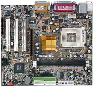 Краткие характеристики платы: разъемы памяти — 2 DDR SDRAM; слоты расширения — AGP/ 3 PCI/ CNR; порты ввода/вывода — 2 COM/ LPT/ 2 PS/2/ 4 USB 1.1; размеры — 245х215 мм.
