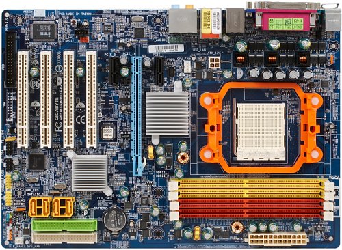 Компания Gigabyte решила позаботиться об упомянутой категории пользователей и выпустила модель, не уступающую, а местами и превосходящую недорогие платы на дискретных чипсетах в части расширяемости и «серьезности» исполнения (что особенно заметно по конструкции стабилизатора напряжения). Но при этом имеющую оригинальный чипсет, сочетающий «младшее» графическое ядро GeForce 6100 и «старший» южный мост nForce 430, который мы привыкли встречать на платах с GeForce 6150. Что же, очень приятно, когда, взяв в руки очередную плату, не приходится ломать голову, гадая, на кого она рассчитана, в данном случае позиция очевидна.