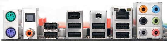 - FireWire (TI TSB43AB23, интерфейс PCI), с поддержкой трех портов IEEE 1394a: из которых два выведены на заднюю панель в виде 4 и 6-контактного разъемов;