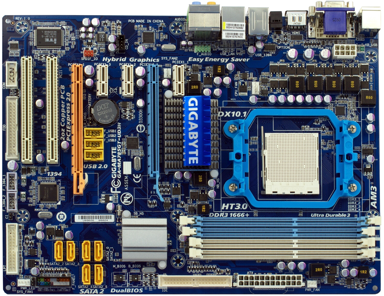 Плата основана на чипсете AMD 785G (северный мост AMD 785G и южный SB710), о возможностях которого вы можете узнать из обзорной статьи по ссылке. Поддерживаются все процессоры с разъемом Socket AM2+/AM3, возможна установка до 16 ГБ DDR3-1066/1333/1600. Для подключения накопителей установлено 6 внутренних портов SATA/300, диски могут объединяться в режимах RAID 0, 1 и 0+1. Также, как и на всех платах на современных чипсетах под AMD-платформу, имеется чипсетный канал IDE с поддержкой 2 накопителей PATA/133.