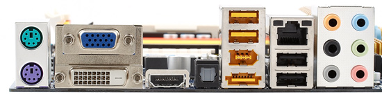 Дизайн платы практически копирует MA78GM-S2H и столь же удачный, дополнительно появились бортики у разъемов (но не всех, а лишь FireWire и COM, для такого же обрамления многочисленных USB просто не хватило места), а название соответствующего интерфейса напечатано прямо на донышке разъема, что похвально, поскольку свидетельствует о заботе о пользователе. Из компоновочных недостатков, обращает на себя внимаение лишь расположение порта PCI Express x1, в который получится установить лишь короткую плату, не выходящую за габариты слота, поскольку радиатор северного моста находится вплотную к этому слоту.