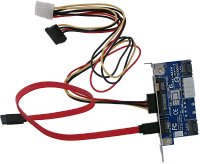 -  Планку на заднюю панель компьютера с разъемами SATA (два интерфейсных разъема плюс один поставляемый в комплекте кабель со сдвоенным питанием: стандартным SATA и стандартным IDE);