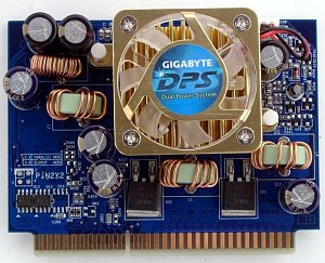 В трехканальном импульсном стабилизаторе напряжения питания процессора применены 3 конденсатора по 3300 мкФ и 3 по 1500 мкФ (при использовании модуля DPS добавляется трехканальный стабилизатор с 2 конденсаторами по 3300 мкФ, 2 по 1500 мкФ и 4 по 1000 мкФ).