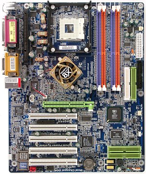 Краткие характеристики платы: разъемы памяти  4 DDR SDRAM; слоты расширения  AGP/ 5 PCI; порты ввода/вывода  2 COM/ LPT/ 2 PS/2/ 3 FireWire/ 6 USB 2.0; размеры  305х245 мм.
