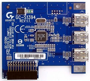 -  Планку на заднюю панель компьютера с 3 портами FireWire (занимает один слот PCI);