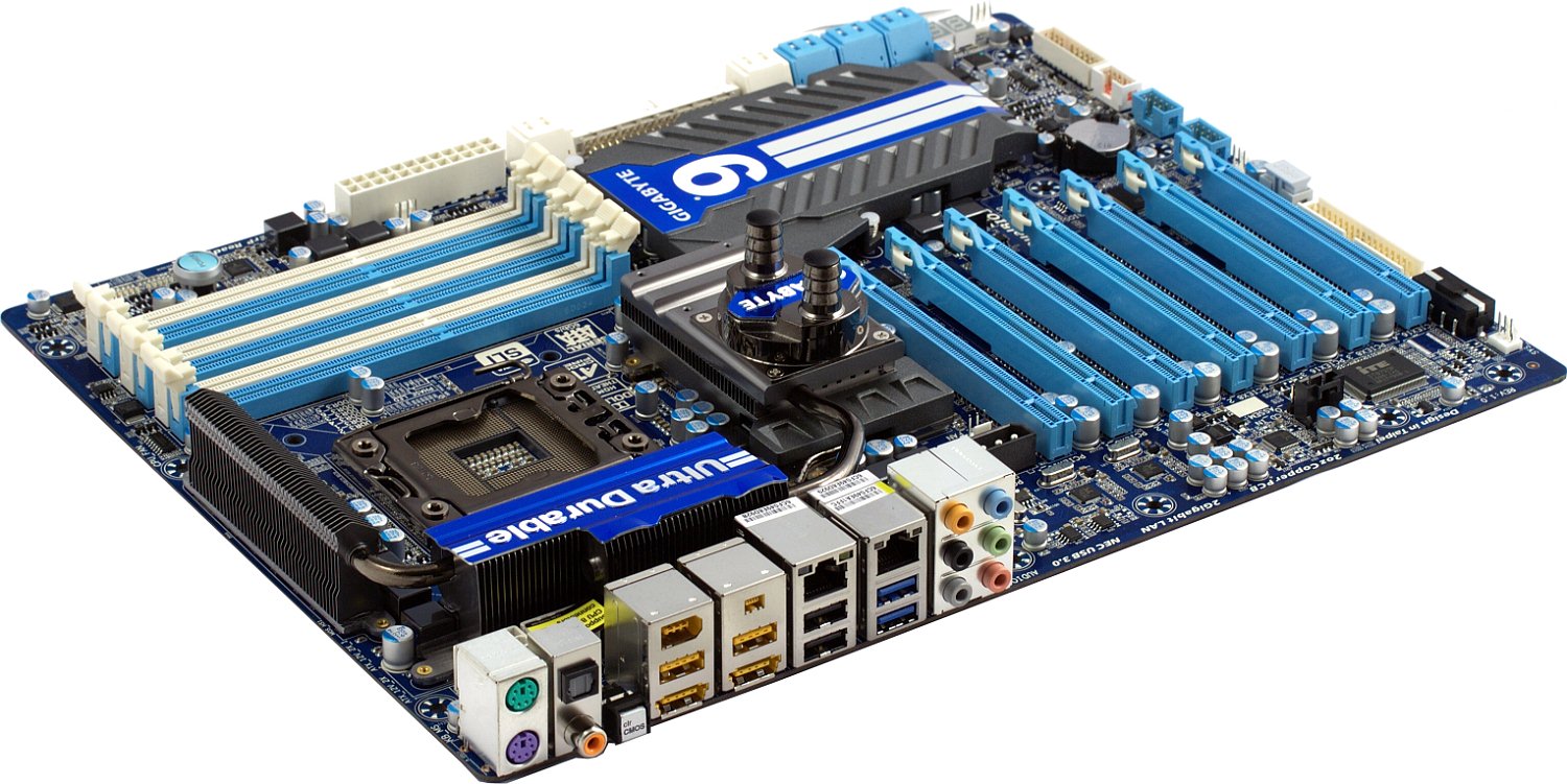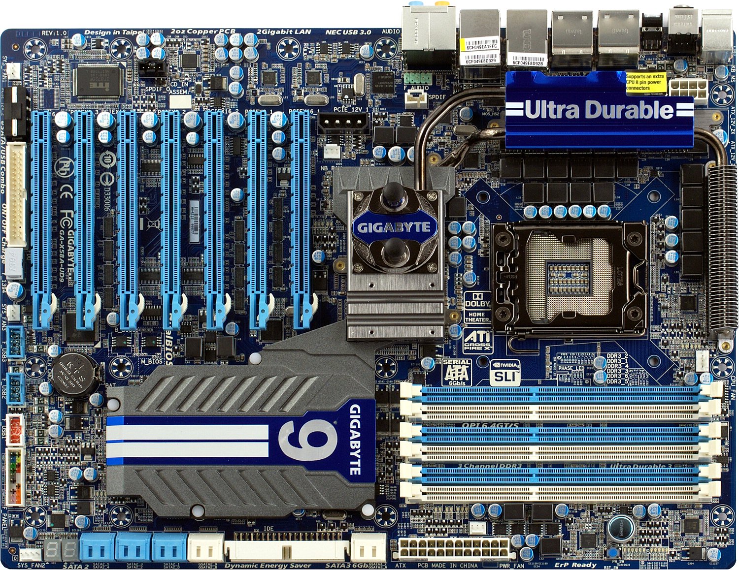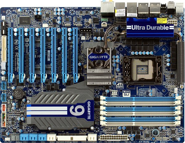 Обычно мы стараемся не брать на тесты материнские платы вроде Gigabyte X58A-UD9. Сам по себе топовый статус модели еще не так страшен: если это просто плата, напичканная всевозможными периферийными контроллерами, с запасом реализующая потребности устанавливаемых комплектующих по питанию, снабженная большим количеством более или менее полезного барахла в коробке, то она, вполне вероятно, найдет своего покупателя. В конце концов, на такой плате можно собрать топовую систему под заказ, полностью оправдывая громкое звание в каждом компоненте. Также могут быть интересны специализированные модели «все для оверклокера/геймера» (почему-то эти два термина маркетологи очень любят сочетать…), вроде представленных в серии ASUS ROG — пусть не для приобретения, а лишь для знакомства с интересным параллельным миром, с собственной терминологией, собственными легендами. Но вот X58A-UD9 — это типичный выставочный продукт, демонстрирующий способность производителя выпустить его (и, как правило, ничего сверх этого).