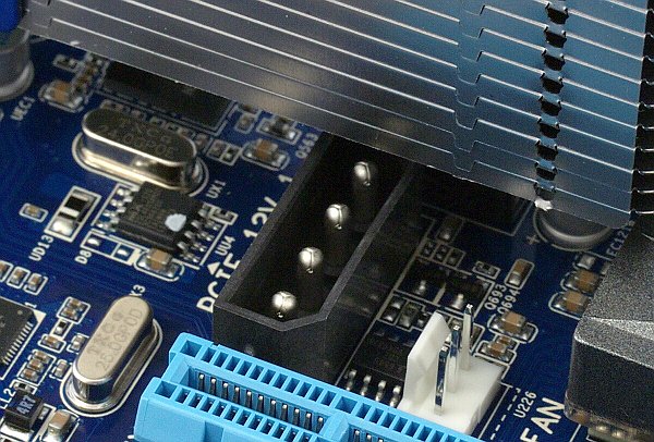 Столь серьезная схема преобразователя напряжения намекает, что плата готова обеспечить очень высокую мощность. Однако при этом требуется и соответствующего качества подвод питания, который в данном случае обеспечивается двумя 8-контактными разъемами EPS12V (на случай, если БП поддерживает независимые линии 12 В для пары коннекторов). Кроме того, хотя сложно представить себе современную топовую видеокарту, полагающуюся на питание от слота PCI Express, на плате смонтированы 2 периферийных 4-контактных разъема питания, к которым можно подключить коннекторы от БП (если он рассчитан на питание IDE-устройств), что, теоретически, должно обеспечить повышенную силу тока в слотах для графики. Впрочем, один из разъемов перекрывается дополнительной системой охлаждения платы — просчет удивительный для продукта такого класса.