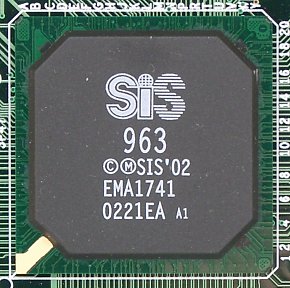 Южный мост чипсета SiS963, реализующий поддержку различных периферийных интерфейсов, не может похвастаться ничем революционным, но в то же время обеспечивает все необходимое для современного чипсета, включая пока практически не встречающийся у конкурентов контроллер FireWire(IEEE 1394a)  до трех портов при использовании внешних контроллеров PHY,  но без набирающего популярность интерфейса Serial ATA. Перечислим и остальные, вполне привычные возможности южного моста: два ATA66/100/133 IDE-контроллера; контроллер USB 2.0 (один EHCI) с поддержкой до 6 портов; Fast Ethernet MAC-контроллер с поддержкой 10Base-T/100Base-TX; 6 устройств PCI 2.2; аудиоконтроллер AC'97 версии 2.2 с поддержкой шестиканальных кодеков.