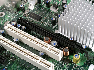 Шина для внешних видеоускорителей PCI Express x16. В этом вопросе Intel оснований для компромиссов не видит, от AGP отказались полностью. Действительно, совмещать работу с обоими интерфейсами чипсету сложно (слишком разные электрические параметры), а отдельный блок выводов для AGP 8x — непозволительная роскошь в условиях, когда MCH и так имеет более 1200(!) ножек. Наверное, нет смысла пересказывать здесь целый цикл наших аналитических материалов по PCI Express, включая перспективы PCIEx16 для видеоускорителей, так что просто еще раз адресуем вас к последней статье, включающей результаты сравнения реальных карт. Альтернативы, между тем, все же есть: во-первых, чипсеты VIA (правда, в реальности рабочих плат с двумя графическими интерфейсами мы пока не видели), во-вторых, некоторые производители уже отличились идеей делать слот AGP из обычного PCI (то, что это очень близкие интерфейсы, надеемся, вы знаете, а детали реализации пока неизвестны). Какова будет стабильность, производительность и, в конечном итоге, привлекательность таких плат для пользователя, нам опять же продемонстрирует время.