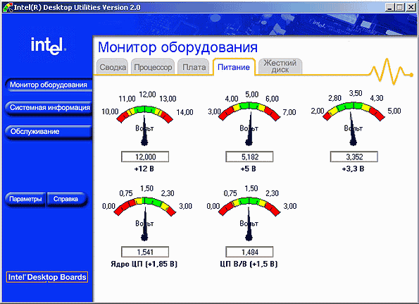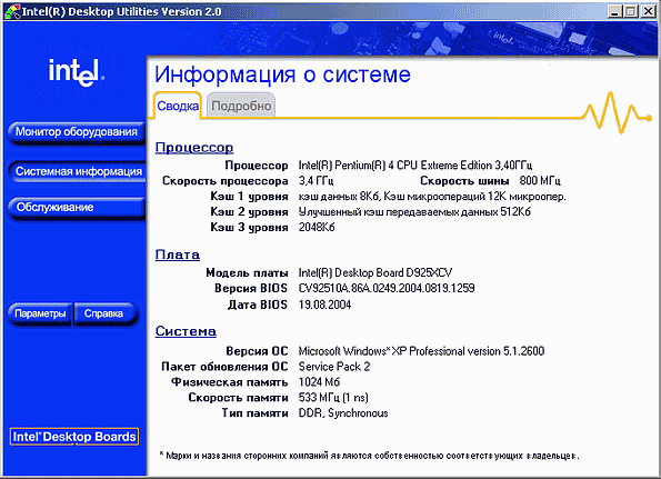 Intel Desktop Control Center в плане реализованных в нем идей, разумеется, не является откровением. Нам известна масса программ (или комбинаций из нескольких программ), предоставляющих аналогичную функциональность как от других производителей системных плат, так и универсальных. Однако сделан DCC «крепко», практически все функции, что требуются от ПО такого рода, поддерживает, смотрится довольно красиво и оригинально (не будем забывать, что он предназначен для рядовых пользователей, которые внешнему виду уделяют не меньше внимания, чем функциональности), в работе прост, логичен, и довольно удобен. Таким образом, если уж вам действительно нужно нечто подобное, и вы являетесь счастливым обладателем компьютера на базе одной из новых плат Intel (пока DCC поддерживает лишь пять моделей: Intel Desktop Board D925XCV, D925XBC, D915PBL, D865PERL, и D875PBZ) то вполне логично будет не искать счастья на стороне, а воспользоваться совершенно бесплатной и неплохо сделанной утилитой от производителя. Замечание (точнее, пожелание) у нас есть только одно: было бы неплохо, если бы DCC умел сворачиваться в system tray.Intel Desktop Utilites