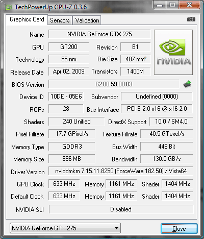 А вот так утилита рапортует о видеокарте, если второй слот освободить: все 16 линий в наличии и задействованы. Конечно, немного жаль терять целых семь линий PCIe (в нашем примере используются 9: 8 для видеокарты и 1 для звуковой), так что без существенной необходимости использовать второй «длинный» слот для карт с интерфейсом PCIe x1 не стоит. Но главное не это, а то, что, буде таковая необходимость возникнет, во второй слот можно устанавливать карты расширения любого типа, а не только видео. Итак, со слотами расширения все замечательно — ничуть не хуже, чем на топовых моделях системных плат под LGA1156. Фактически, DP55WG можно использовать в качестве хорошей, но «голой» платформы для multi-GPU либо для рабочей станции с высокой функциональностью, а все нужное к ней можно приобрести дополнительно, не переплачивая за интегрированные компоненты.