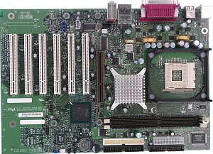 Краткие характеристики платы: разъемы памяти 2 DDR SDRAM; слоты расширения AGP/ 6 PCI; порты ввода/вывода 1 COM/ LPT/ 2 PS/2/ 6 USB 2.0; размеры 305х210 мм.