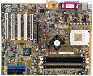 - звуковой, реализованный на базе APU чипсета и AC'97-кодека Avance Logic ALC650, с возможностью подключения аудиосистем 5.1, разъемом для подключения фронтальных аудиовыходов и разъемом S/PDIF;