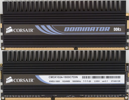 Исследованные модули памяти Corsair DOMINATOR TWIN3X2048-1800C7DFIN G проявили себя в качестве надежных представителей нового поколения памяти DDR3. В максимальном скоростном режиме DDR3-1600, сертифицированном JEDEC, они оказались способными функционировать с максимально низкой схемой таймингов 6-6-6-11 (при рекомендованном питающем напряжении 2.0 В), а в неофициальном режиме DDR3-1800, указанном в профиле XMP, рекомендованную схему таймингов 7-7-7-20 удалось снизить до 7-6-6-13.
