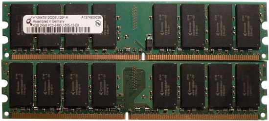Однако конечной продукцией, которая могла бы заинтересовать не только отраслевых потребителей, но и широкие пользовательские массы, являются не чипы памяти, а модули, процесс изготовления которых гораздо проще с технической точки зрения, но, тем не менее, не лишен своих особенностей. Именно поэтому под маркой производителей чипов (это равно касается не только Qimonda, но и Samsung, и Hynix), как правило, продаются лишь непритязательные внешне изделия, способные работать на штатных частотах, причем стабильно и надежно, но представляющие крайне ограниченный интерес в качестве объекта исследования. Мы, однако, решили познакомиться с именно такой парой модулей от Qimonda суммарным объемом 8 ГБ, и, собственно, выяснить: насколько сильно повлияет на скоростные характеристики увеличение плотности микросхем в сочетании с двухбанковой организацией модуля.