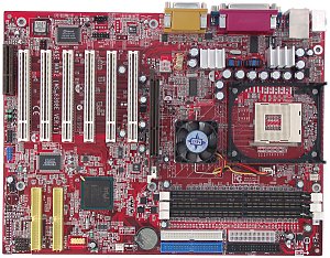 Краткие характеристики платы: разъемы памяти  3 DDR SDRAM; слоты расширения  AGP/ 6 PCI / CNR; порты ввода/вывода  2 COM/ LPT/ 2 PS/2/ 6 USB 2.0; размеры  305х230 мм.
