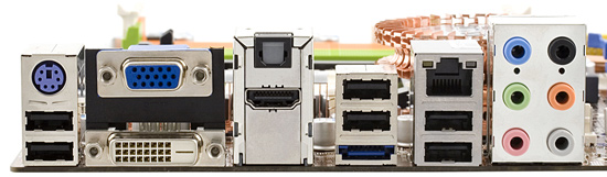 интегрированный звук (10-канальный (7.1+2) HDA-кодек Realtek ALC888), с возможностью подключения аудиосистем 7.1 и дополнительным стереовыходом, доступным при подключении фронтальных аудиовходов/выходов в корпусе, на заднюю панель выведен оптический порт S/PDIF-Out;