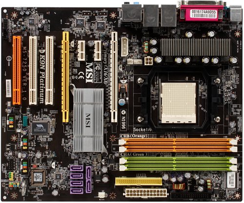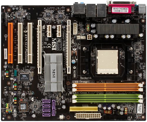 3 слота PCI (слот оранжевого цвета имеет выделенную линию питания и предназначен для установки фирменной карты расширения MSI Dual Net Card, но может использоваться и в качестве обычного PCI-слота);