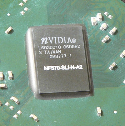 Несмотря на то что плата базируется на чипсете, официально не имеющем поддержки SLI, на ней разведены два слота PCI Express x16. Во второй из них (желтого цвета), постоянно работающий в режиме PCI Express x1, можно установить вторую видеокарту, но лишь для подключения дополнительной пары мониторов. Однако, учитывая, что разводка K9N Platinum идентична модели на чипсете nForce 570 SLI, нельзя исключить возможность разблокировки дополнительных линий PCI Express и режима SLI, по всей видимости, имеющихся в Ultra-версии чипсета.