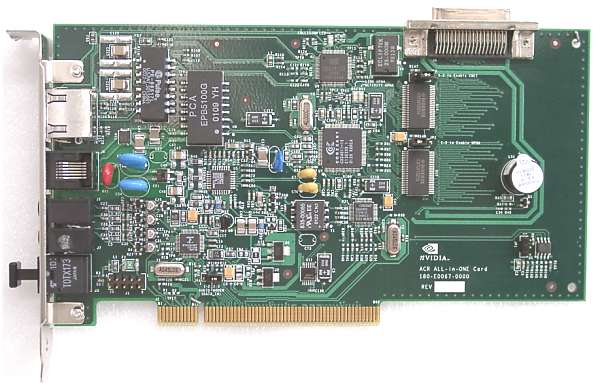 На плате установлены два слота PCI и один ACR  казалось бы, немного, но в комплекте идет карта расширения, предназначенная для установки в разъем ACR, так что этого вполне достаточно. Дело в том, что на этой карте размещено большинство тех устройств, которые могут понадобиться в работе: сетевой контроллер, модем или HomePNA, оптический выход типа Toslink и выводы для подключения центрального канала, сабвуфера, а также тыловых колонок.