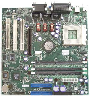 Поскольку на плате применен чипсет с интегрированным графическим ядром, привычное место разъема второго последовательного порта занял разъем VGA, а сам порт реализован в виде разъема на плате, к которому при желании можно подключить планку на заднюю или переднюю панель компьютера. Не слишком понятно решение оставить северный мост чипсета без радиатора  думается, что при серийном производстве плат микросхеме с достаточно высокой рабочей температурой уделят должное внимание. Порты ввода/вывода защищены плавкими предохранителями  впрочем, такое решение сейчас применяется поголовно всеми.