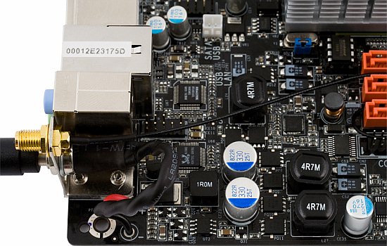 Впрочем, этот перечень исчерпывает стандартные потребности для подключения внутренних устройств в компактном корпусе, а набор разъемов задней панели никак не позволяет жаловаться на скупость разработчиков. Три разных видеовыхода (HDMI, DVI, аналоговый D-Sub; любые два могут работать независимо), два разных S/PDIF-Out для обладателей ресиверов прошлых поколений, и даже 3 аналоговых аудиоразъема на всякий случай (8-канальный звук можно вывести только по HDMI). С прочей периферией тоже все отлично: 6 портов USB, сетевая розетка (разумеется, для гигабитной сети), 1 eSATA и осталось место даже для порта PS/2. Если говорить о топовых конкурентах настольного сегмента (без всякой скидки на миниатюрность Ion!), то не хватает разве что FireWire, но, будем честны, потребность в портах с таким интерфейсом неуклонно падает. Ну и плюс — модуль Wi-Fi-n (AzureWave AR5B91), антенна которого тоже выводится на заднюю панель.