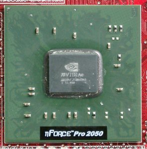 Во-первых, мосты nForce Pro, согласно заявлению NVIDIA, все-таки отличаются от nForce4 — в том числе и количеством транзисторов. Зато друг от друга, как хорошо видно на фотографии, 2200 и 2050 не отличаются даже размером, так что отсутствующая часть функций nForce Pro 2050 попросту заблокирована. Уточним, что информации о цели применения «лишних» транзисторов в мостах nForce Pro нет.