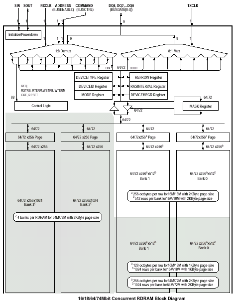 - Concurrent RDRAM 16/18Mbit (2Mx8/9) & 64/72Mbit (8Mx8/9)