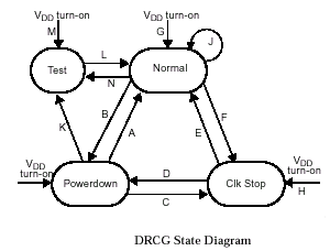 Когда входной сигнал STOPB активного высокого уровня, тактовый генератор находится в нормальном режиме работы (Normal) и выходы CLK/CLKB являются дополнительными выходами к уже имеющемуся выходу (PAClk) у стабилизатора фазы.