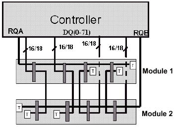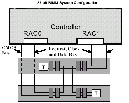 Для обслуживания 64bit модулей должен применятся контроллер с соответствующим количеством каналов, управляемых определенным числом RAC в зависимости от реализации. Например, RMC может быть спроектирован таким образом, чтобы осуществлялась поддержка как 64bit модулей, так и RIMM с 16bit интерфейсом  такого рода управляющее устройство обеспечивает максимальную гибкость и, думается, не лишнюю обратную совместимость.