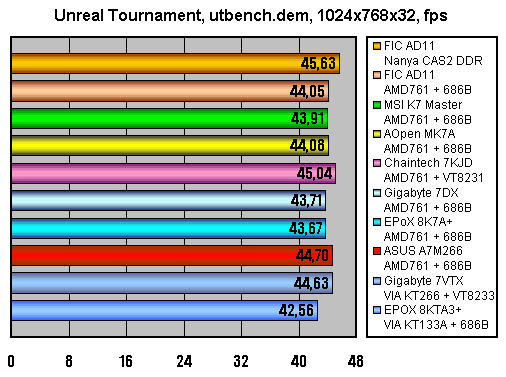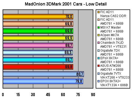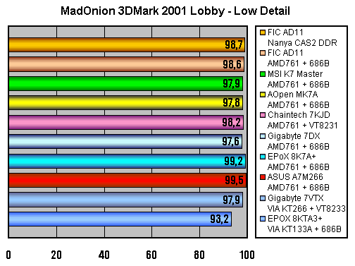 очевидна: в "Low Detail" тестах все платы на базе AMD-760 проигрывают даже KT133A, но как