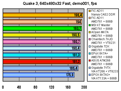 Для тех, кому нужна скорость, скорость, и еще раз скорость — имеет смысл задуматься над покупкой FIC AD11. В подавляющем большинстве тестов эта плата показала превосходные результаты, обойдя всех конкурентов. Правда, иногда даже ее обгоняет ASUS A7M266, но по общему количеству выигранных "забегов" FIC AD11 все равно впереди.