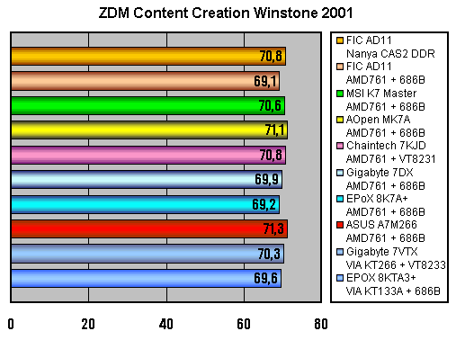 Кое-где больше, кое-где меньше, но в общем KT266 проиграл быстрым платам на базе AMD-760. Кстати,