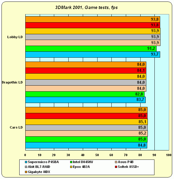 "Надежность — прежде всего". Оверклокинг? Это "не для солидных людей". Платы Intel и Supermicro предназначены для тех, кто разгоном не то что не интересуется, но даже может и вообще о нем ничего не слышал. Стабильные, надежные — им место в низкоуровневых (не будем все-таки забывать про не очень быструю память) рабочих станциях и обычных десктопах. В общем-то, большей скоростью (на фоне платы Intel) отличается Supermicro P4SBA, но отличие это скорее можно назвать "номинальным" — на практике его вряд ли кто-то заметит.